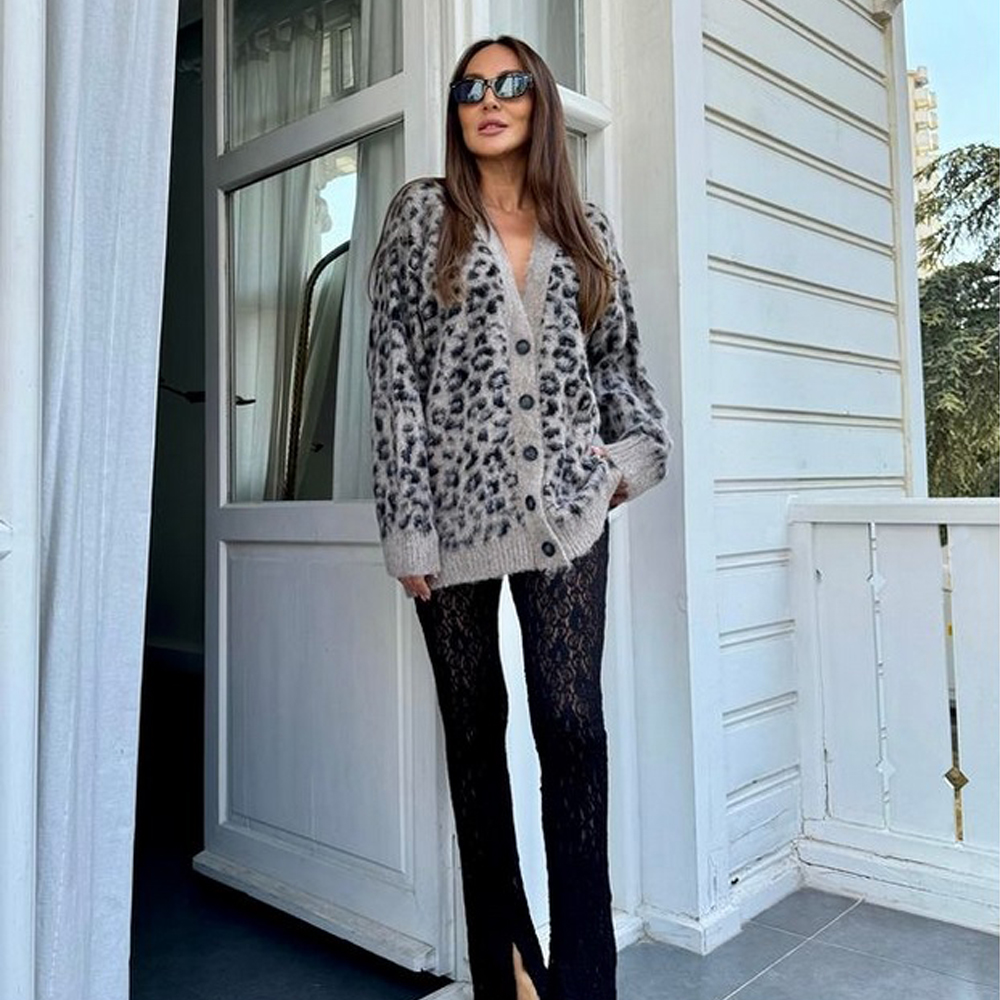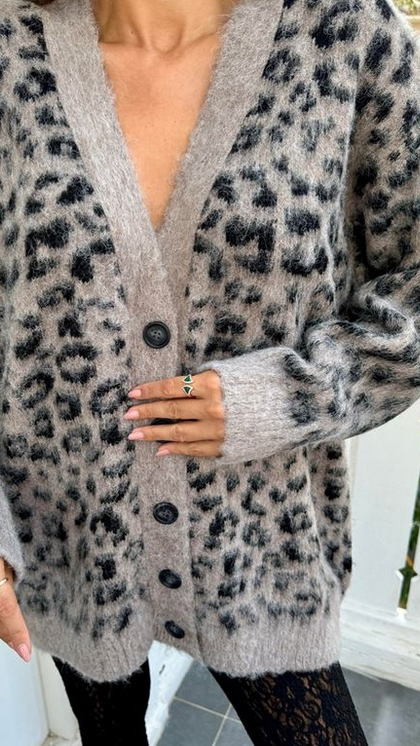 Leopard cardigan.